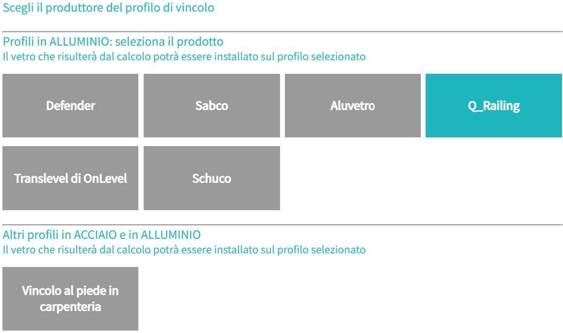 Il vetro che risulterà dal calcolo potrà essere installato sul profilo selezionato